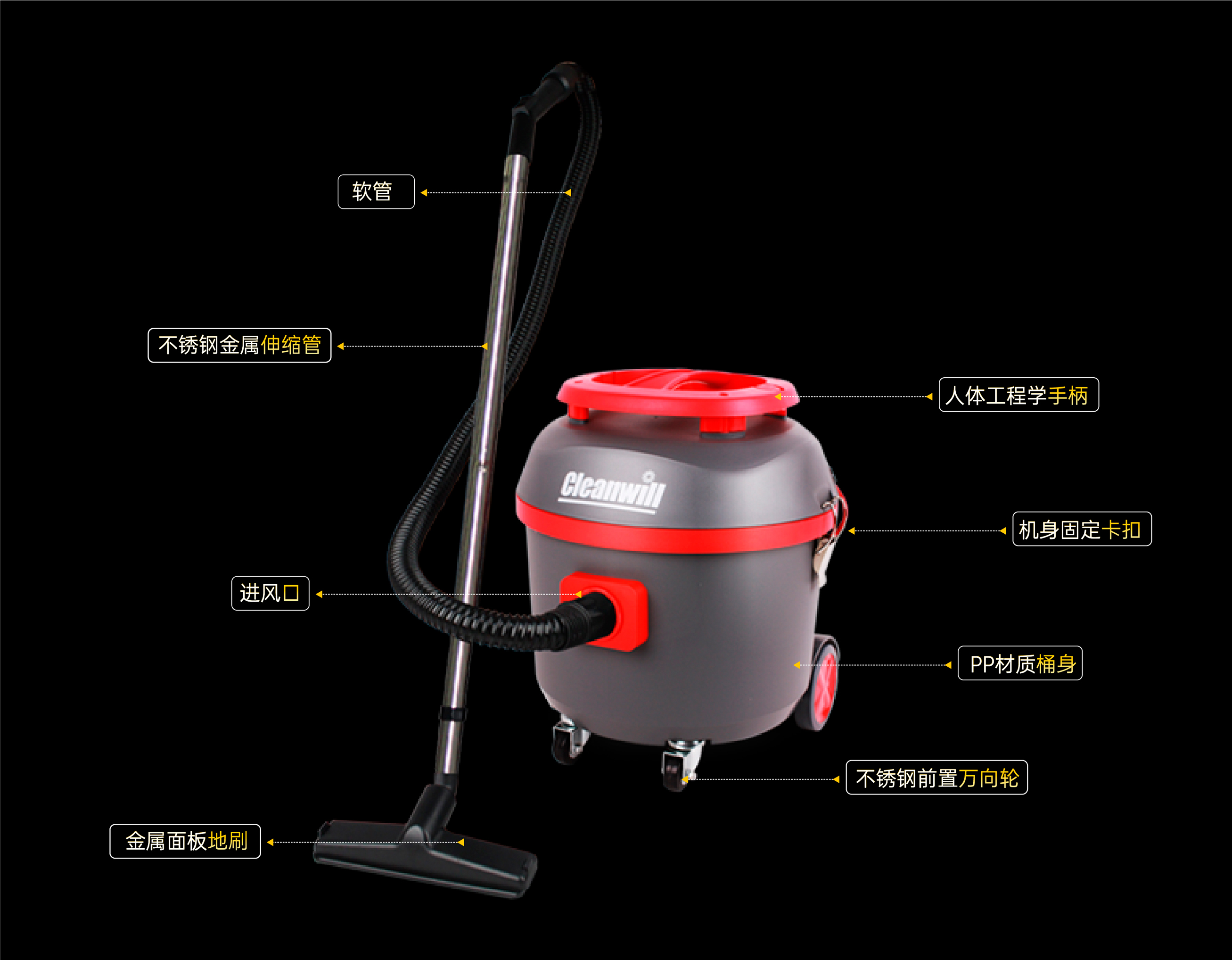 克力威cleanwill低噪音吸尘器XC15J是一款经典款干式吸尘器。具有低噪音和大吸力的特点,被广泛应用于写字楼,星级酒店等场合。