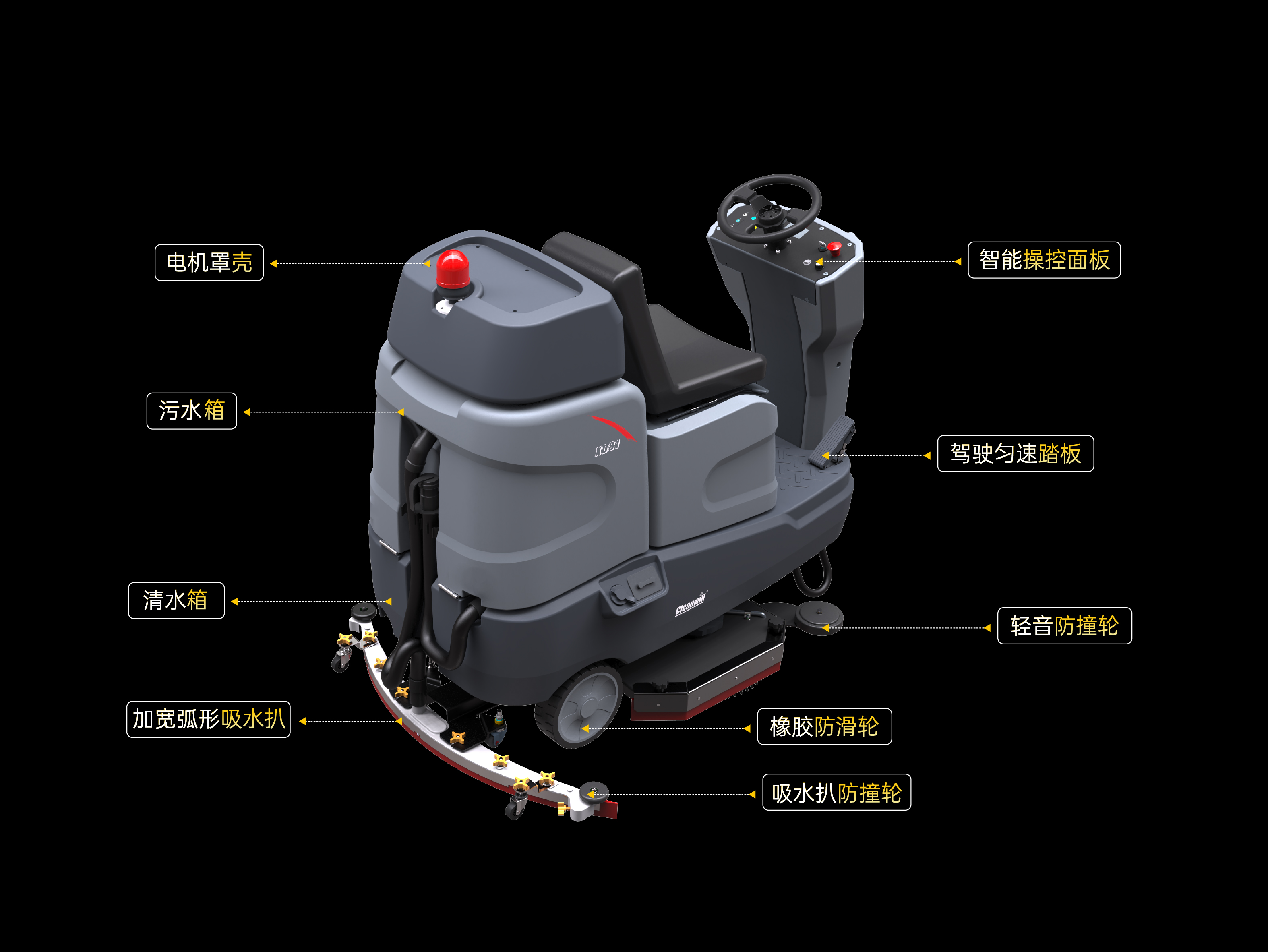 是一款中型驾驶式洗地吹干一体机。车库、工厂等大面积场所得地面清洁,更加得心应手。专注于可靠性、用户友好的操作并提供出色的性价比。